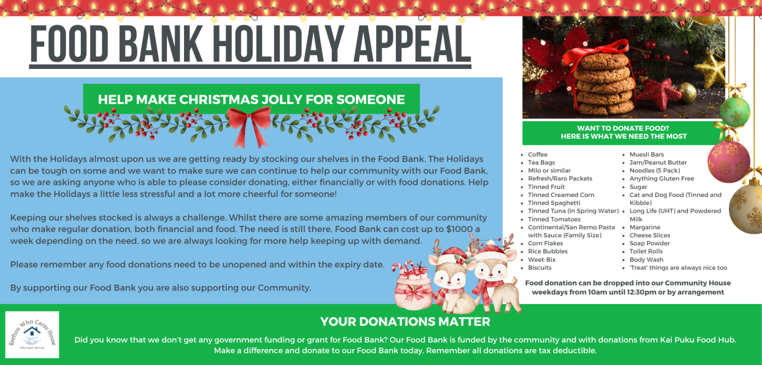 If you want to make a food donation or become a volunteer cook please phone Lisa Neil on 027 732 8631. To make a financial donation visit the Making a Donation page under Contact Us, or click here.